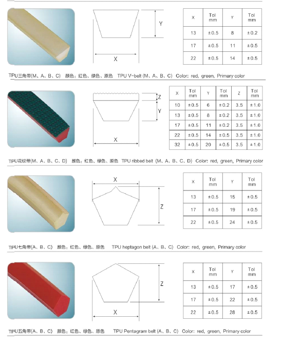 Nous proposons une gamme complète de ceintures de polyuréthane à utiliser dans les machines industrielles de transmission. Et dans le transport de produits allant de la machine de transport, du tapis roulant au verre et aux carreaux. Les ceintures rondes sont disponibles avec des surfaces lisses et rugueuses et renforcées avec du polyester, du nylon ou des fibres. Peut également souder la courroie au joint torique. Fournir les outils de connexion et les accessoires pour les ceintures de polyuréthane, incluez la pince, le fer électrique et le couteau, les méthodes de connexion sont le soudage à chaud, le soudage chevauchant.